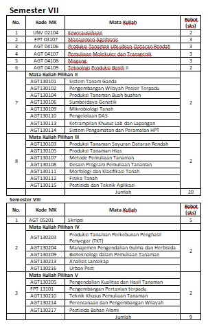 Struktur mata kuliah pada Program Studi Agribisnis dapat dilihat pada tabel berikut.